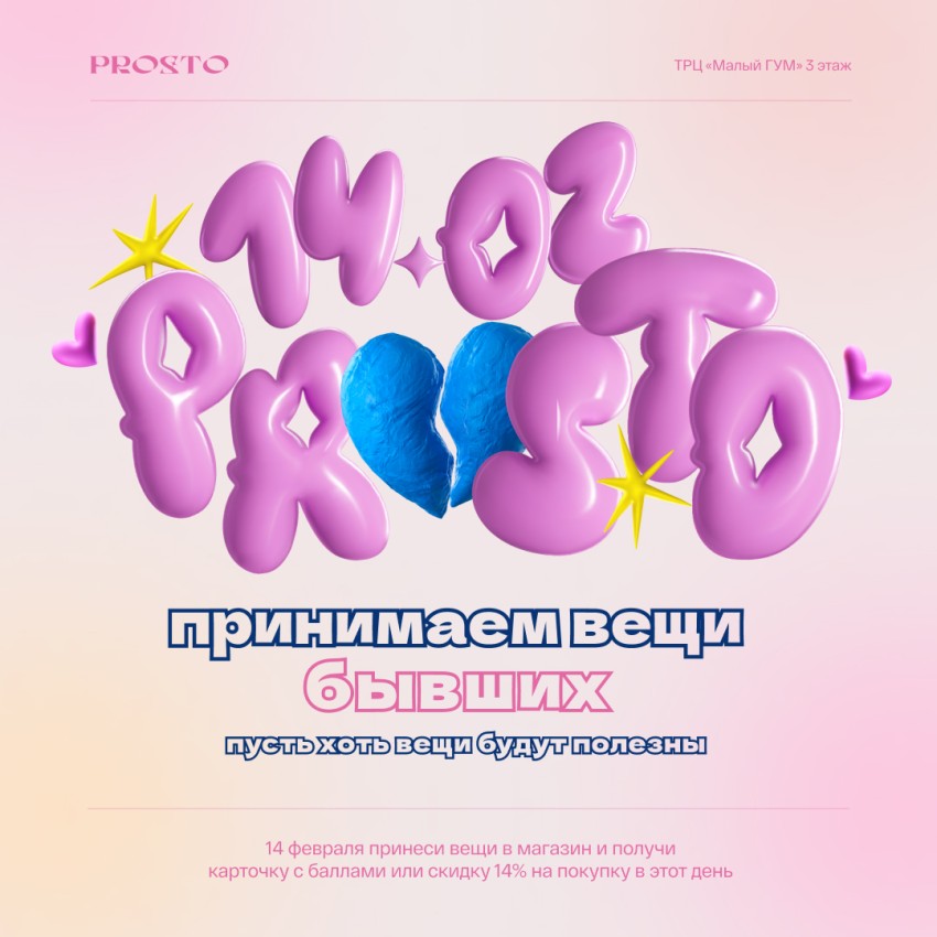 Только один день 14 февраля Prosto принимает вещи бывших!