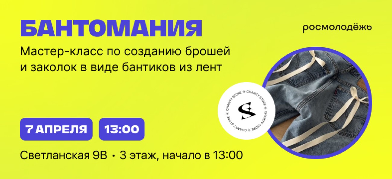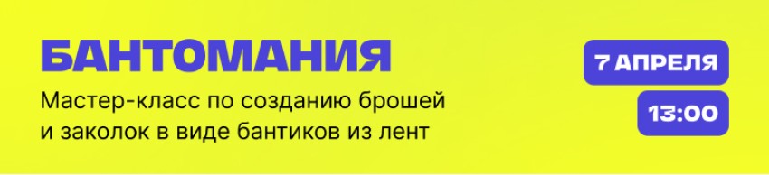Друзья! В воскресенье 7 апреля приглашаем вас на бесплатный мастер-класс "Бантомания" по изготовлению брошек и заколок из лент.