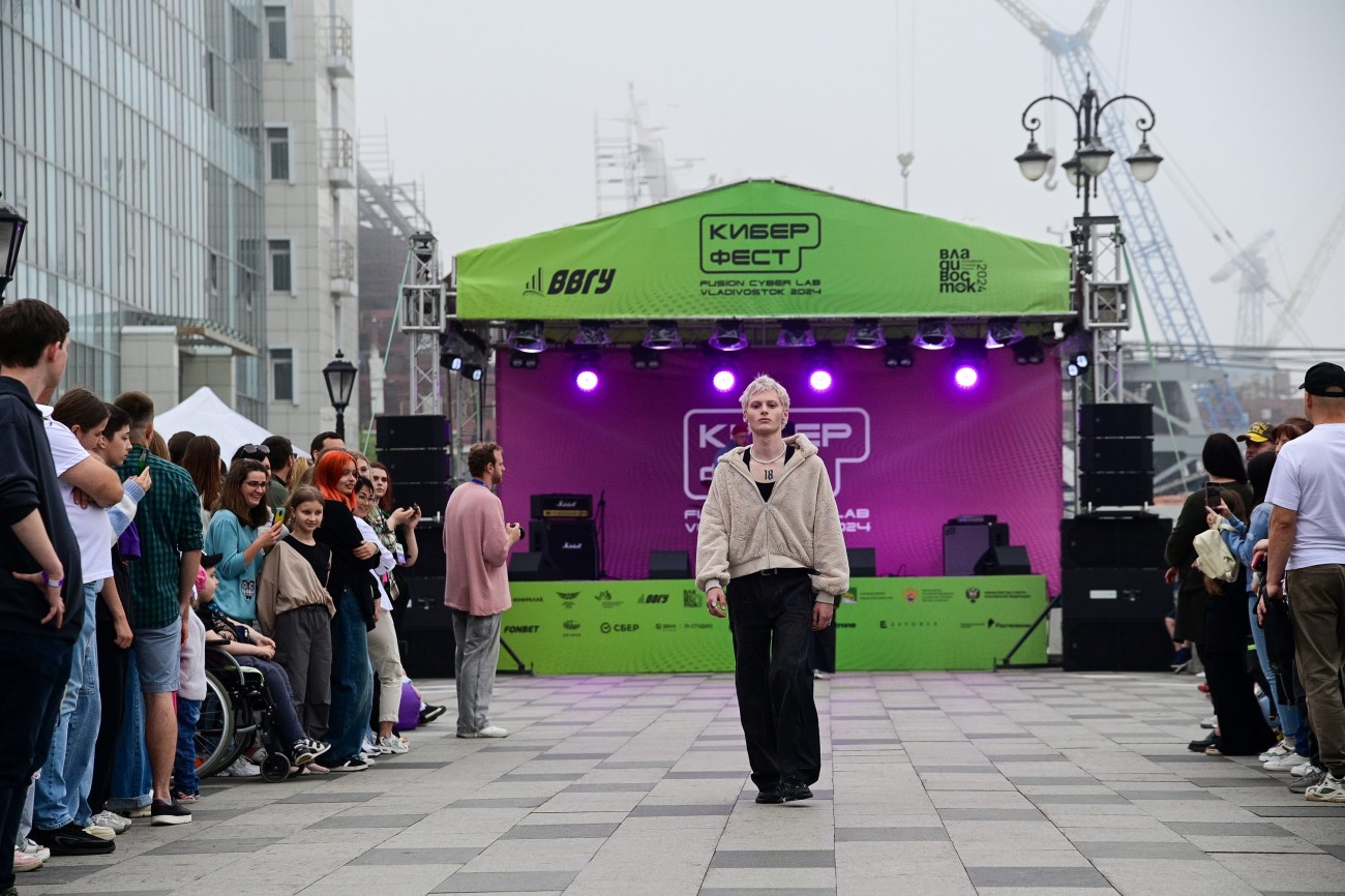 Во время показа зрители увидели дропы приморских апсайкл-дизайнеров, которые были участниками проекта Апсайкл.Prosto и создали свои коллекции с использованием бывших в употреблении материалов.