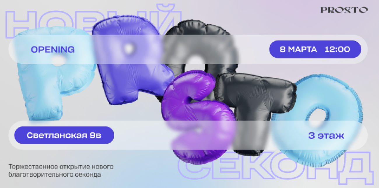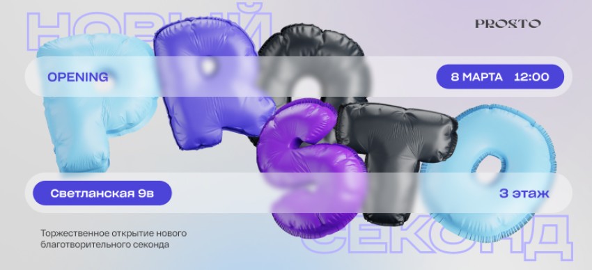 Команда Prosto c радостью приглашаем вас на открытие второго благотворительного секонда Prosto, которое состоится 8 марта!